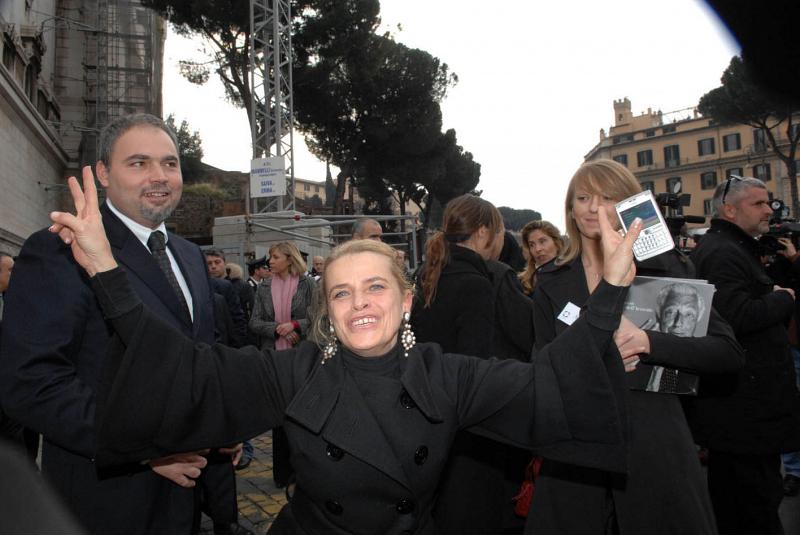 (Adnkronos) - "Mi e' piaciuta molto": e' Donna Marella Agnelli, la vedova di Gianni Agnelli, a rispondere cosi', con un sorriso, al cronista che le chiede un giudizio sulla mostra inaugurata oggi al Complesso del Vittoriano sotto il titolo 'Il secolo dell'Avvocato', che con una serie di foto ripercorre il percorso umano e professionale di Gianni Agnelli. Donna Marella, entrata insieme al nipote John Elkann, esce dalla mostra 'scortata' dall'altro nipote, Lapo, che affettuosamente la protegge dall'assalto di cameraman e fotografi e che poi si allontana in macchina con lei. All'inaugurazione della mostra, che ricostruisce la figura dell'Avvocato con una serie di foto pubbliche e tratte dall'archivio privato, con molti protagonisti del Novecento, tra di essere numerose quelle con Jackie e John Kennedy, sono intervenuti numerosi i familiari del presidente della Fiat scomparso. Dall'erede designato, John, ai fratelli Lapo e Ginevra, alla sorella Susanna, alla moglie di John Lavinia Borromeo. Presenti anche il presidente della Fiat e di Confindustria, Luca Cordero di Montezemolo (che un paio di foto ritraggono insieme all'Avvocato anche in momenti privati, come una passeggiata in montagna), l'amministratore delegato della casa torinese Sergio Marchionne, il presidente dell'Ifil Gianluigi Gabetti, il cognato, l'editore Carlo Caracciolo.